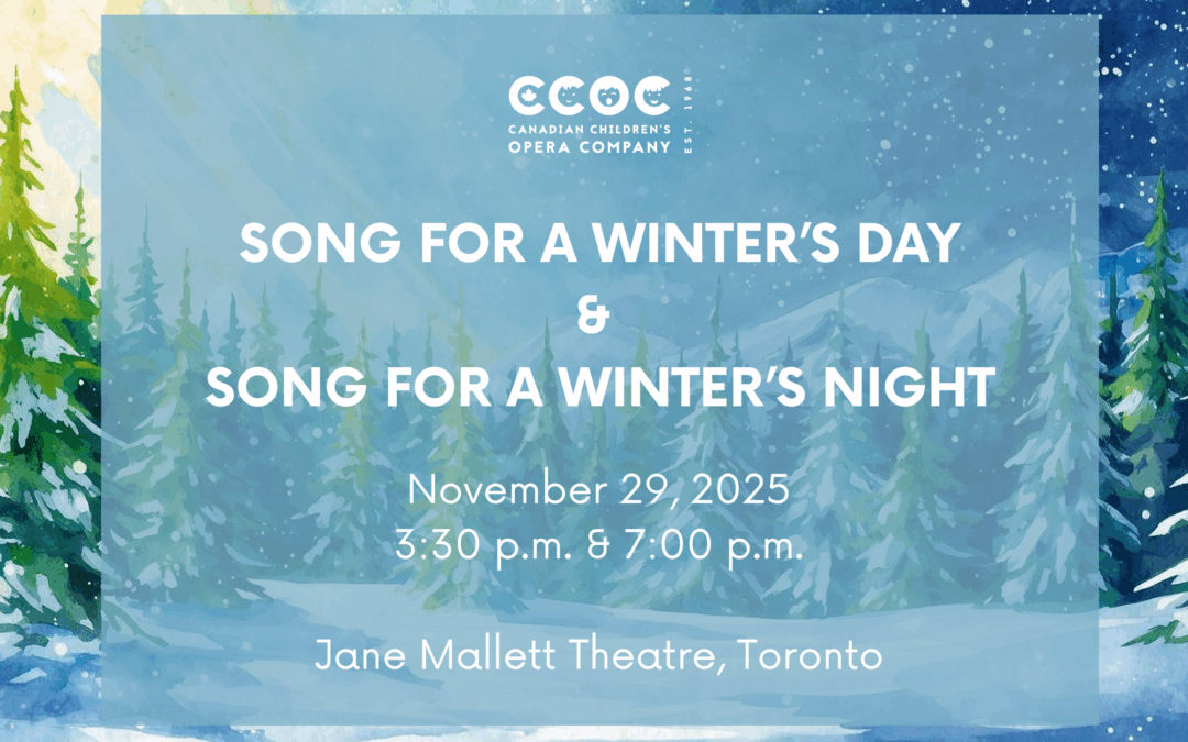 The CCOC is proud to annouce that our tickets are now on sale for our annual winter concert, Song for a Winter’s Day and Song for a Winter’s Night taking place at the Jane Mallett Theatre on Saturday, November 29, 2025!
