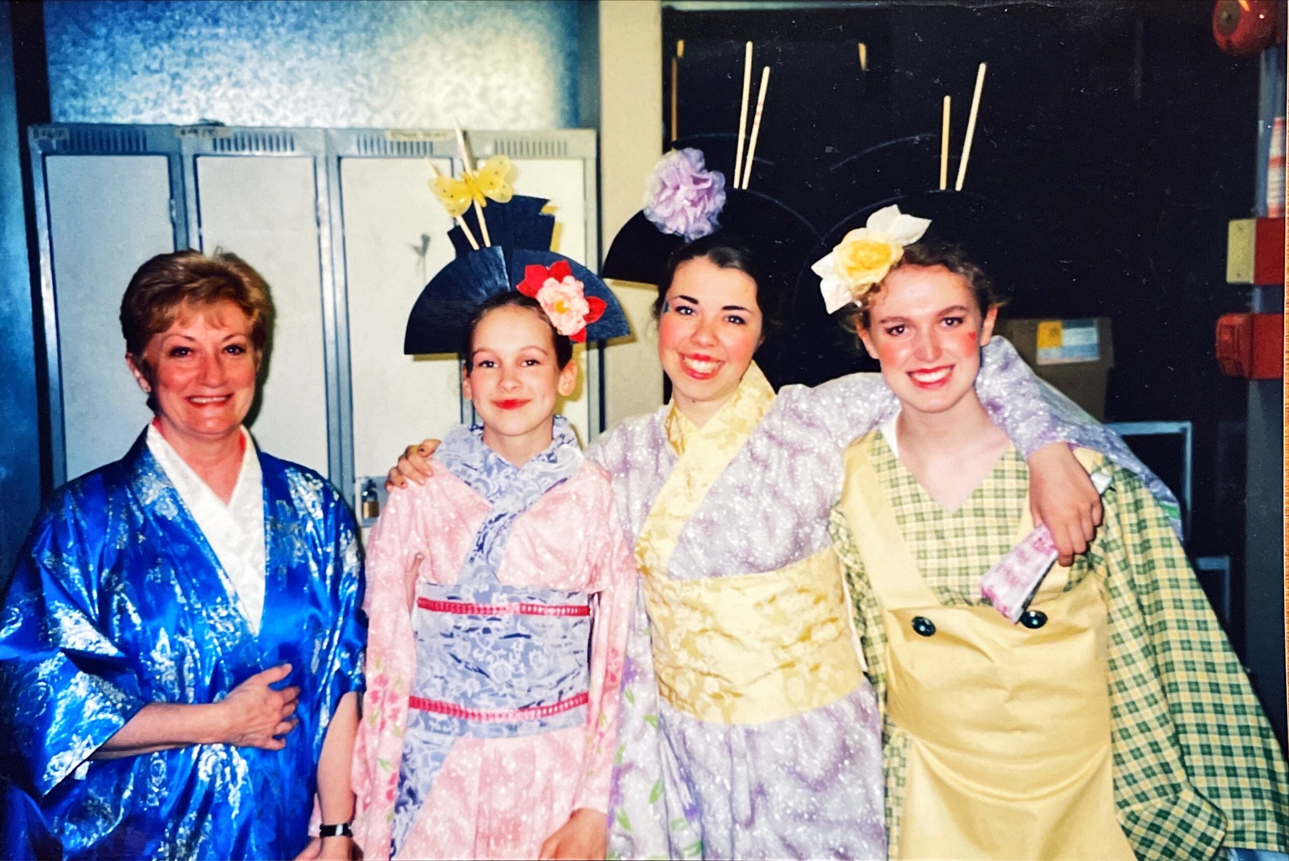 Ann Cooper Gay (on the left) and Stephanie Applin (on the right) backstage at the CCOC’s production of The Mikado in 2002.